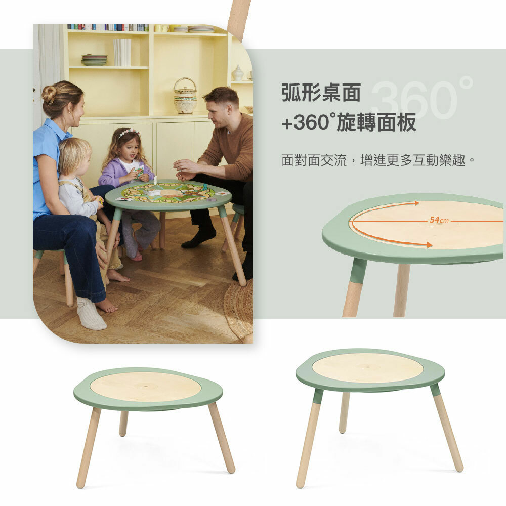 弧形360度旋轉桌面,桌腳兩段式調整高度