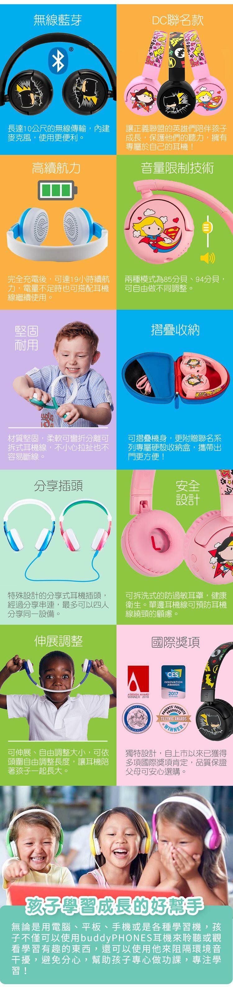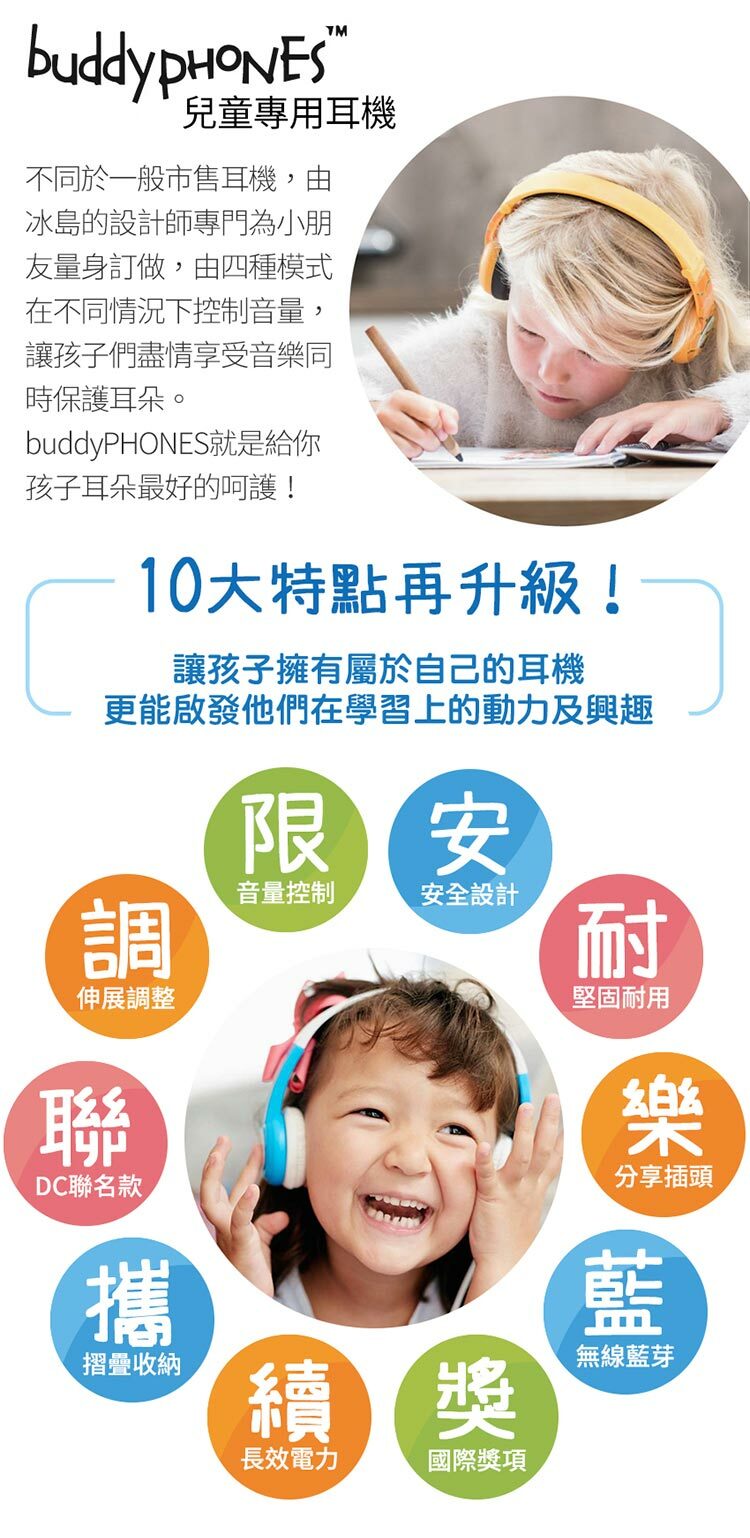 保護孩子的聽力,建議掌握60-60原則,聲音60分貝,連續時間不超過60分鐘。此外,為了避免孩子不由自主地調高音量,內建音量限制技術的buddyPHONES兒童耳機就是您最好的選擇。