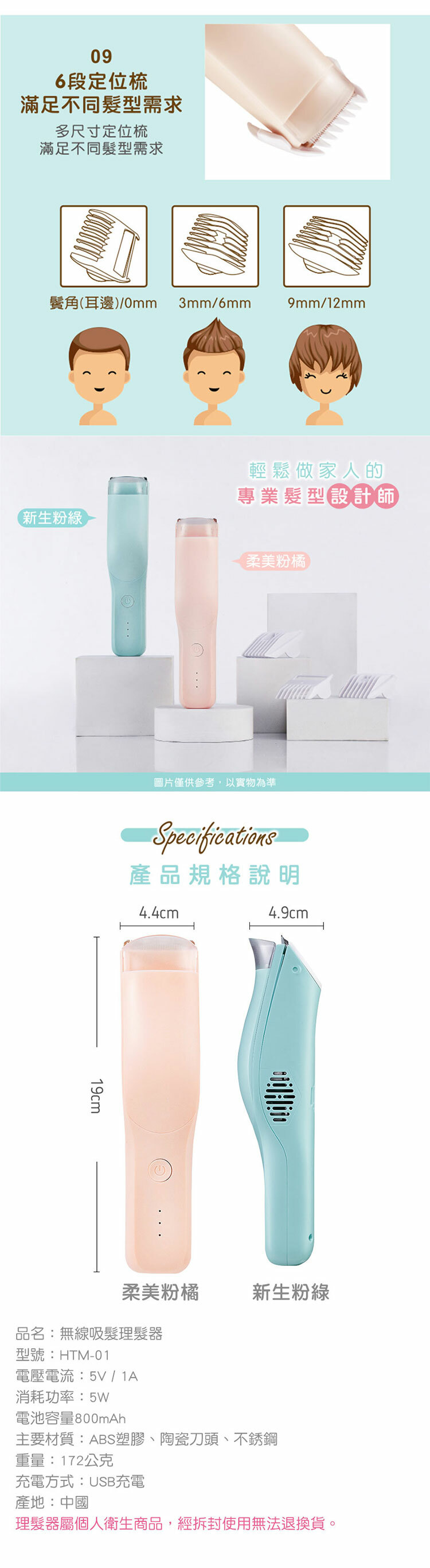1.本產品僅用於修剪頭髮,請勿用於修剪寵物毛髮或其他用途。