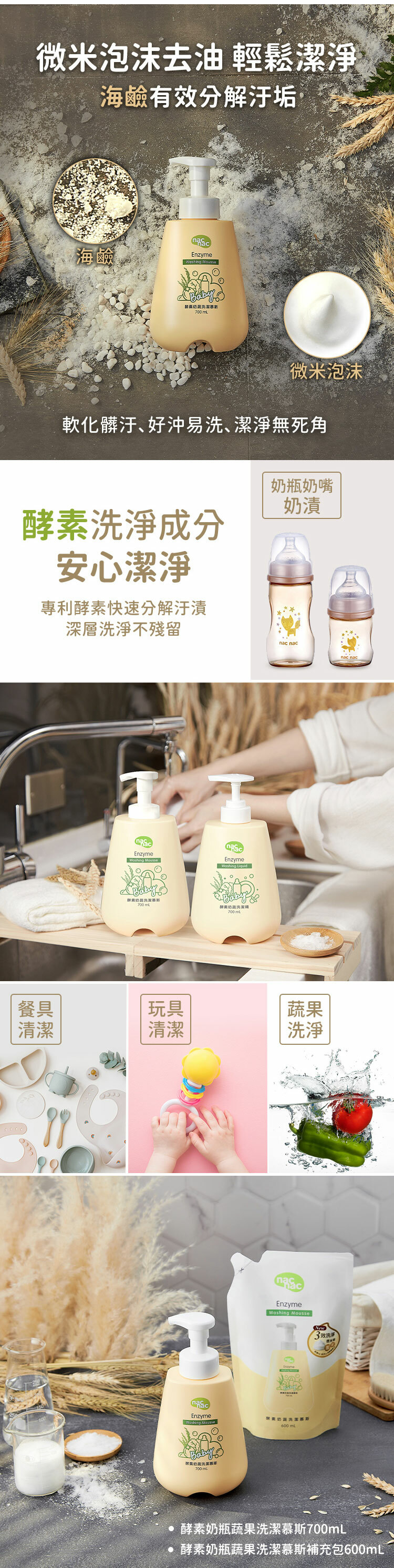 🍼Nac Nac酵素奶瓶蔬果洗潔慕斯→補充包-600ml/罐裝-300ml/罐裝-700ml