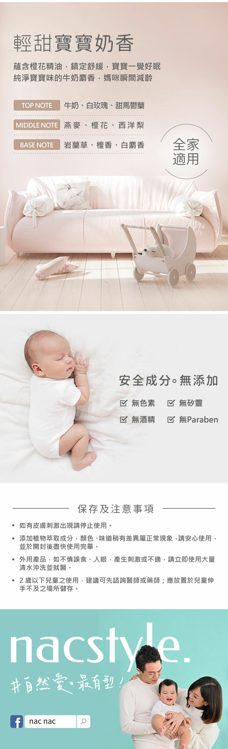 ✓輕甜寶寶奶香,蘊含橙花精油,白麝香安撫助眠