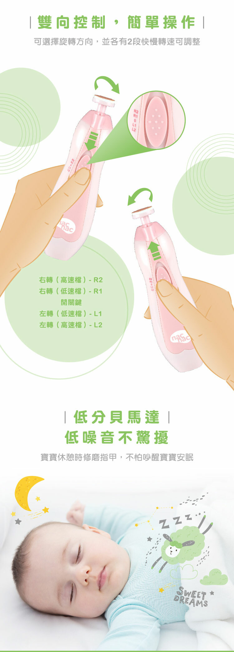 低分貝馬達不擾人,寶寶睡覺時也能輕柔修甲