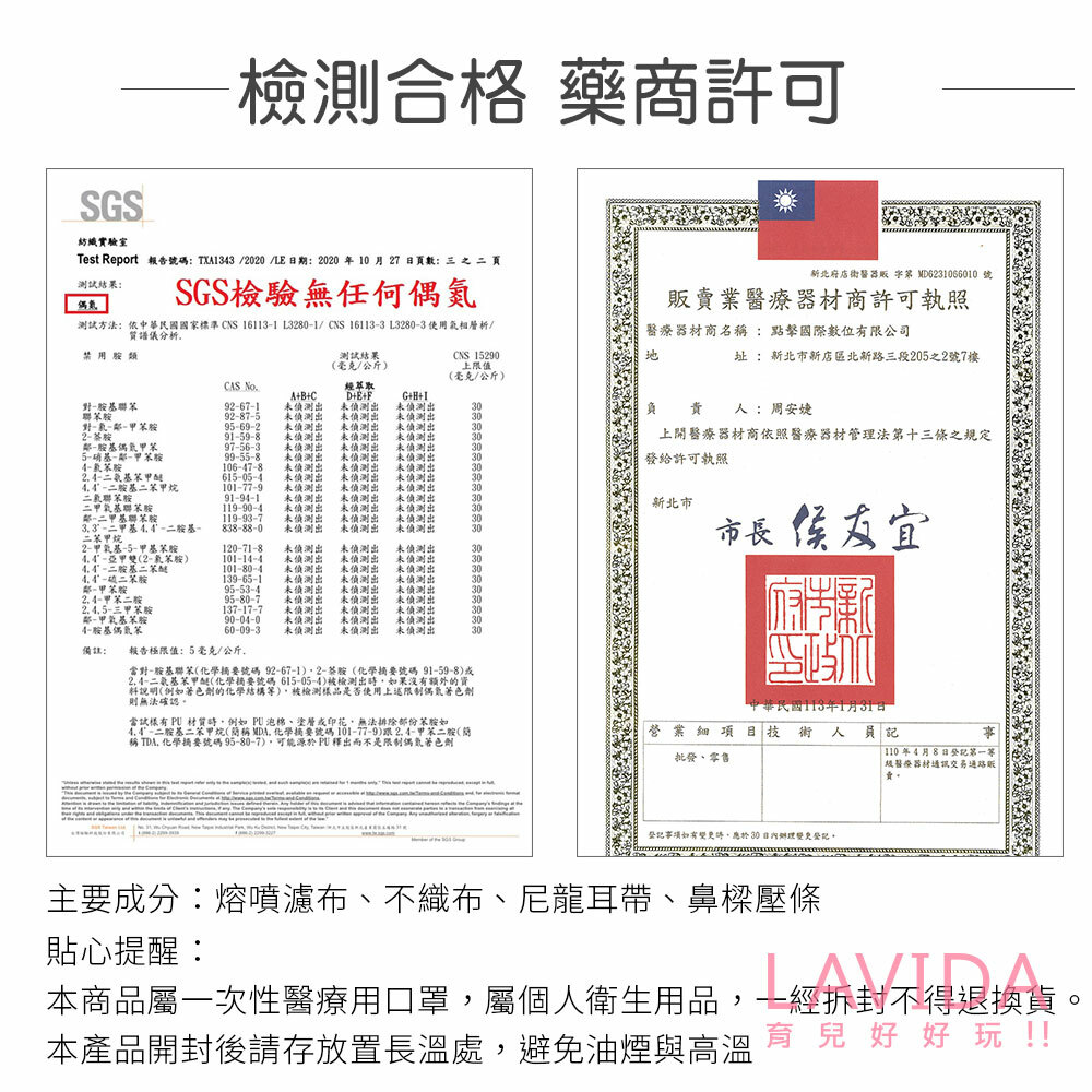 材 質:熔噴濾布、不織布、尼龍耳帶、鼻樑壓條