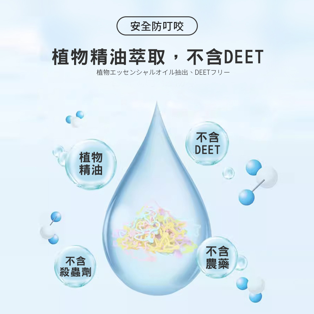 可愛的外型可做手飾使用,天然精油驅趕蚊蟲,不含任何殺蟲成分