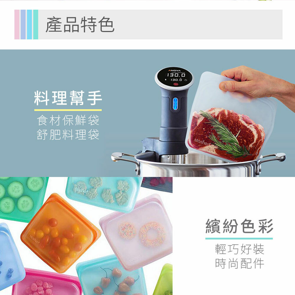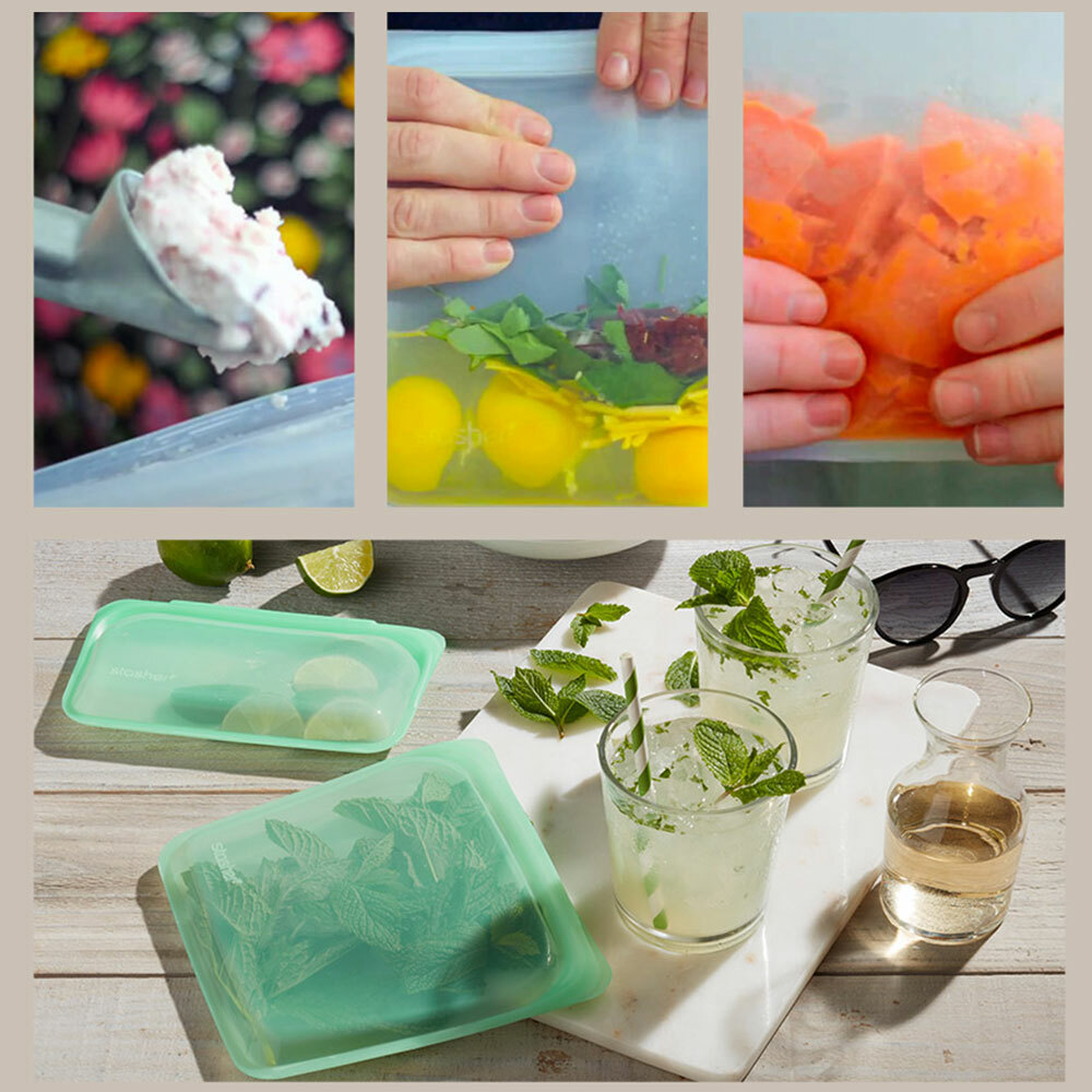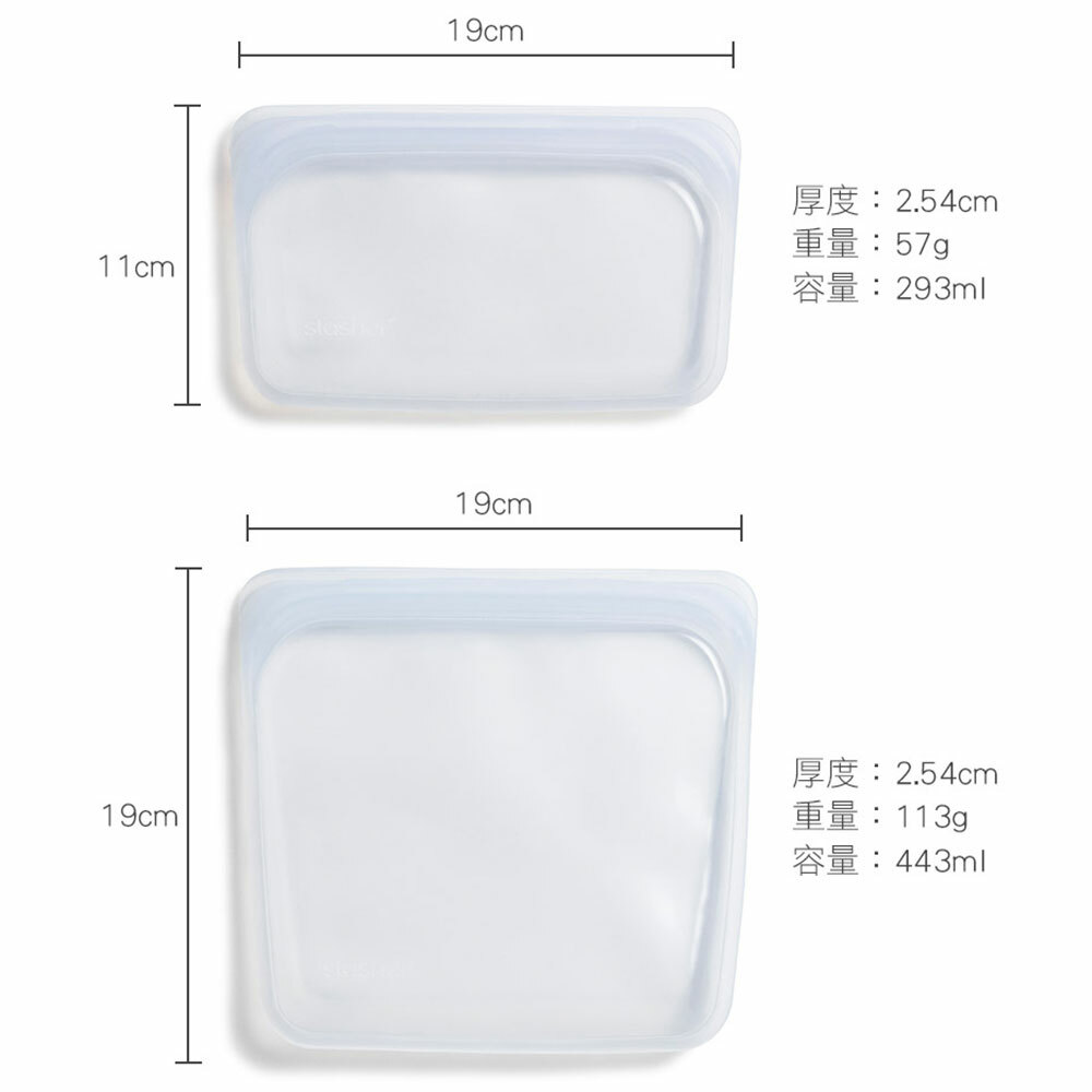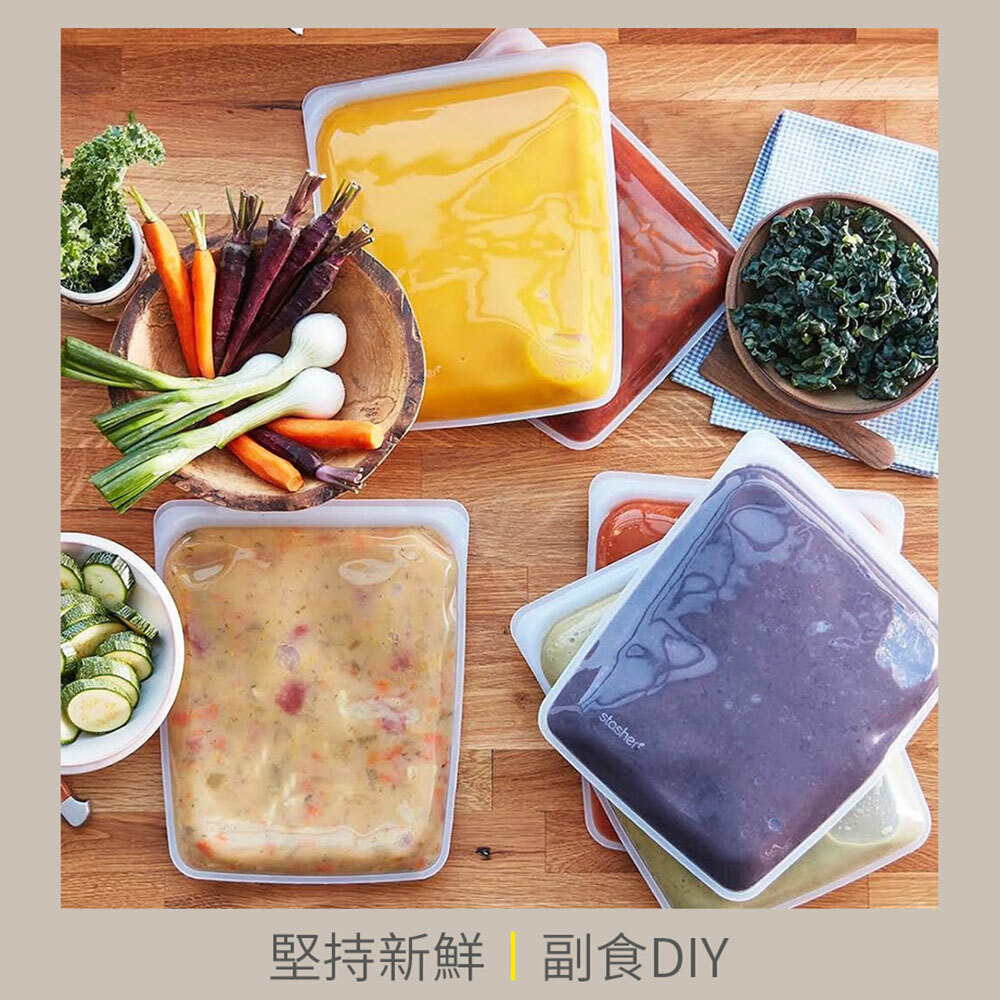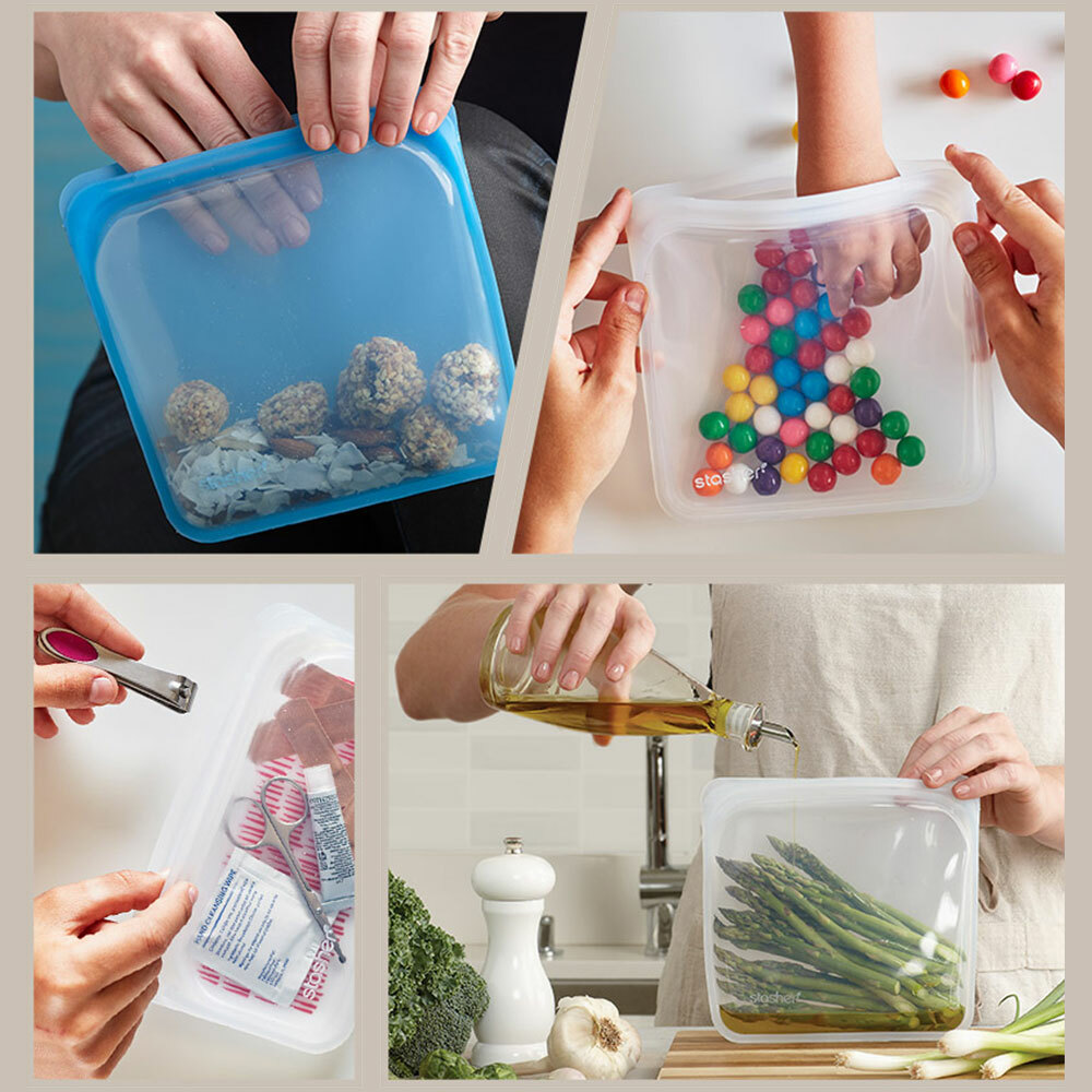 ●氣味附著:一體成形的Stasher使用高品質白金矽膠製造,表面無孔洞、細菌不附著,有效抑止細菌、異味孳生;但氣味較重的食物還是有可能在袋內留下氣味,可透過清洗或以小蘇打水浸泡去除味道,以滾水煮過、或使用新鮮檸檬片也有幫助。