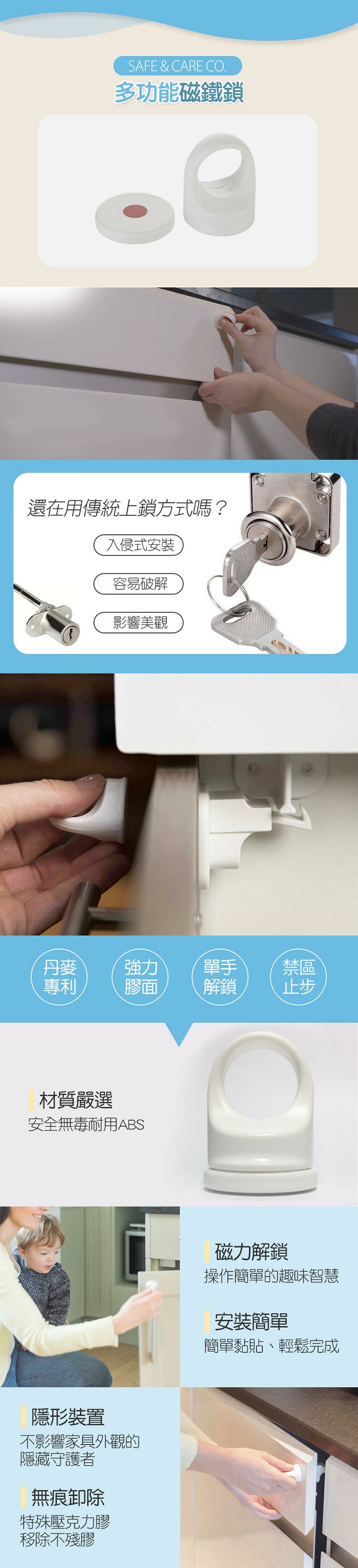 ✔鎖頭吸住才能打開,防止好奇幼童破解