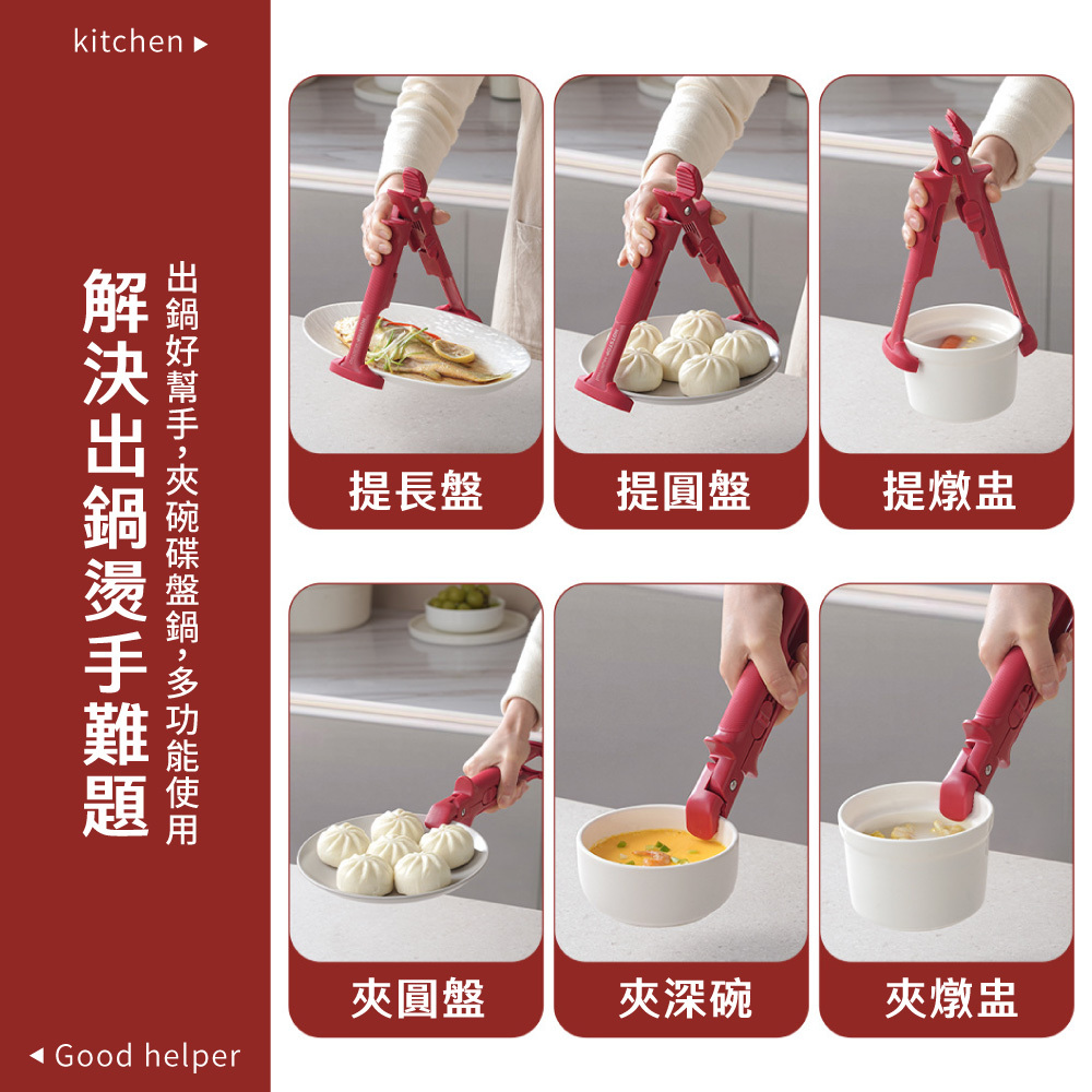 1.二合一設計:取碗夾+提盤器,多功能合一更方便