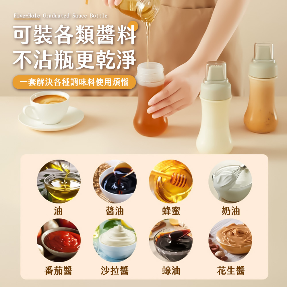 五孔有刻度醬料瓶,五孔設計,用量控制、