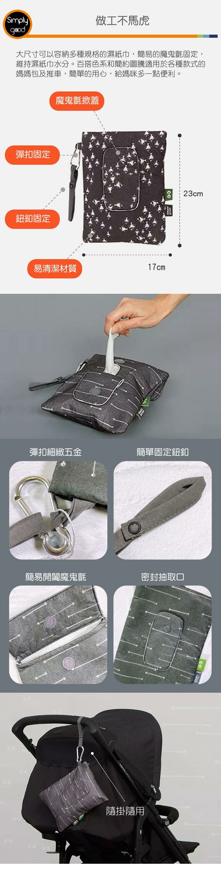 ✔側邊附扣帶,可與媽媽包連結或是掛推車上