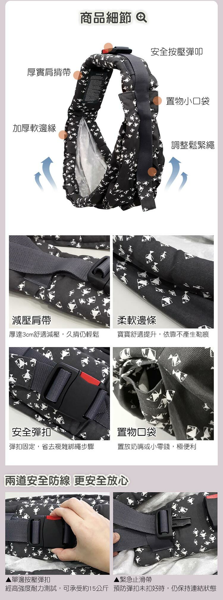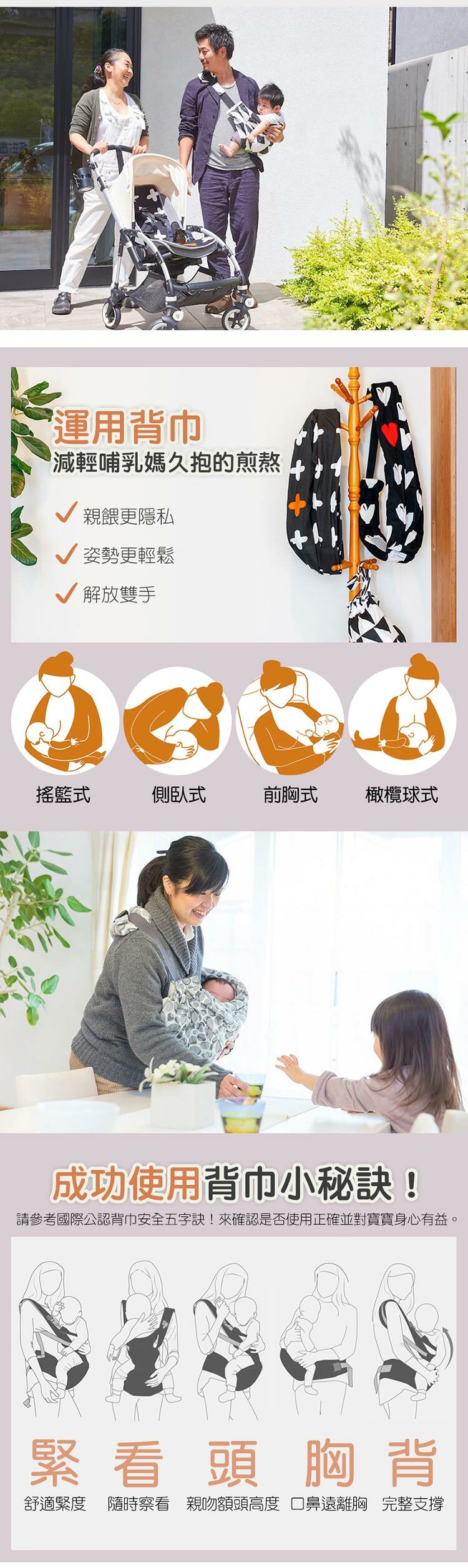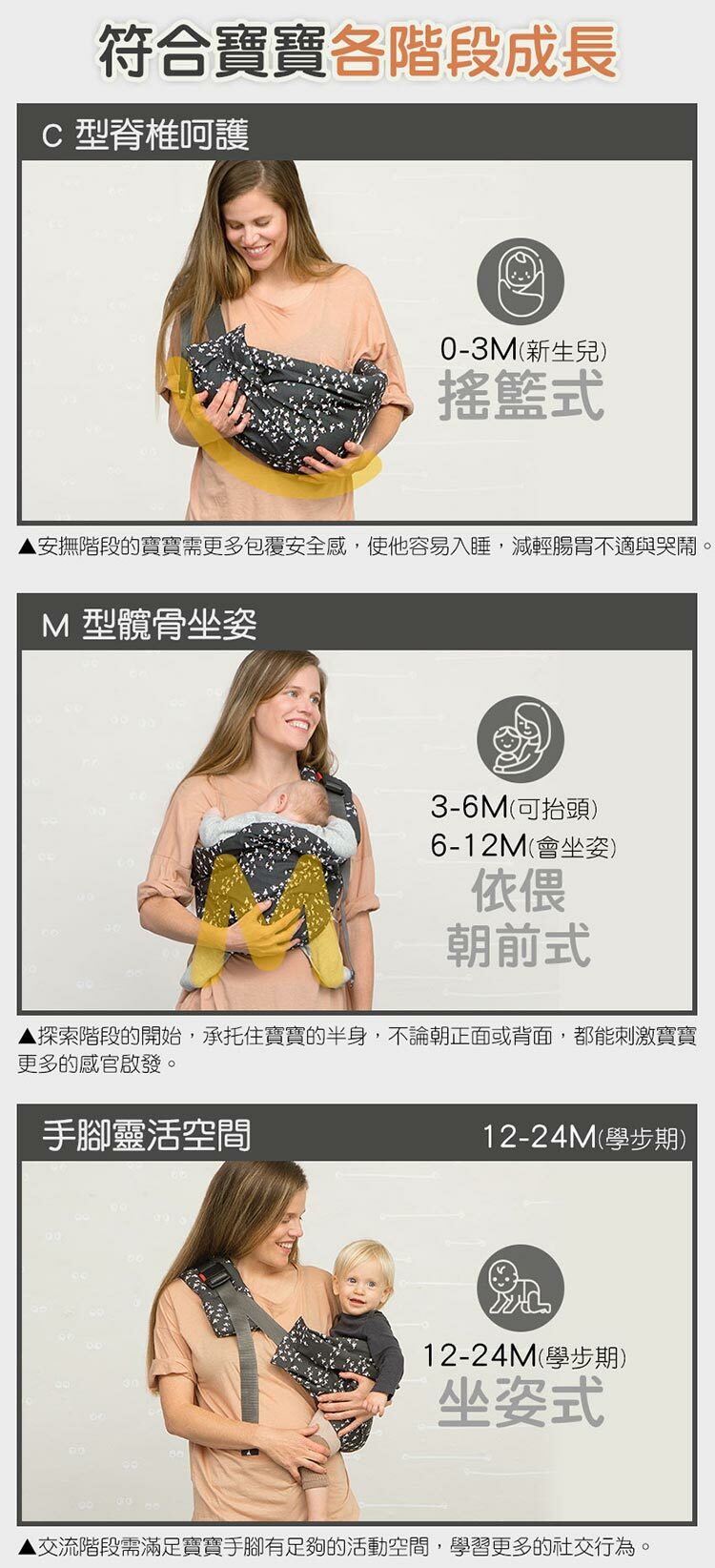 ✔環抱/依偎/側坐三種背法,適合0-2歲嬰幼兒