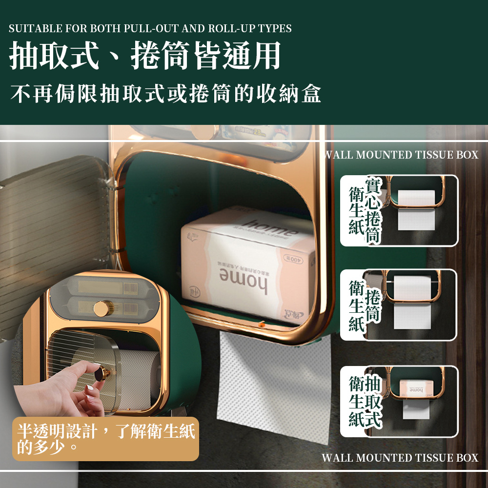 免打孔壁掛、密封防水、抽取捲筒通用,