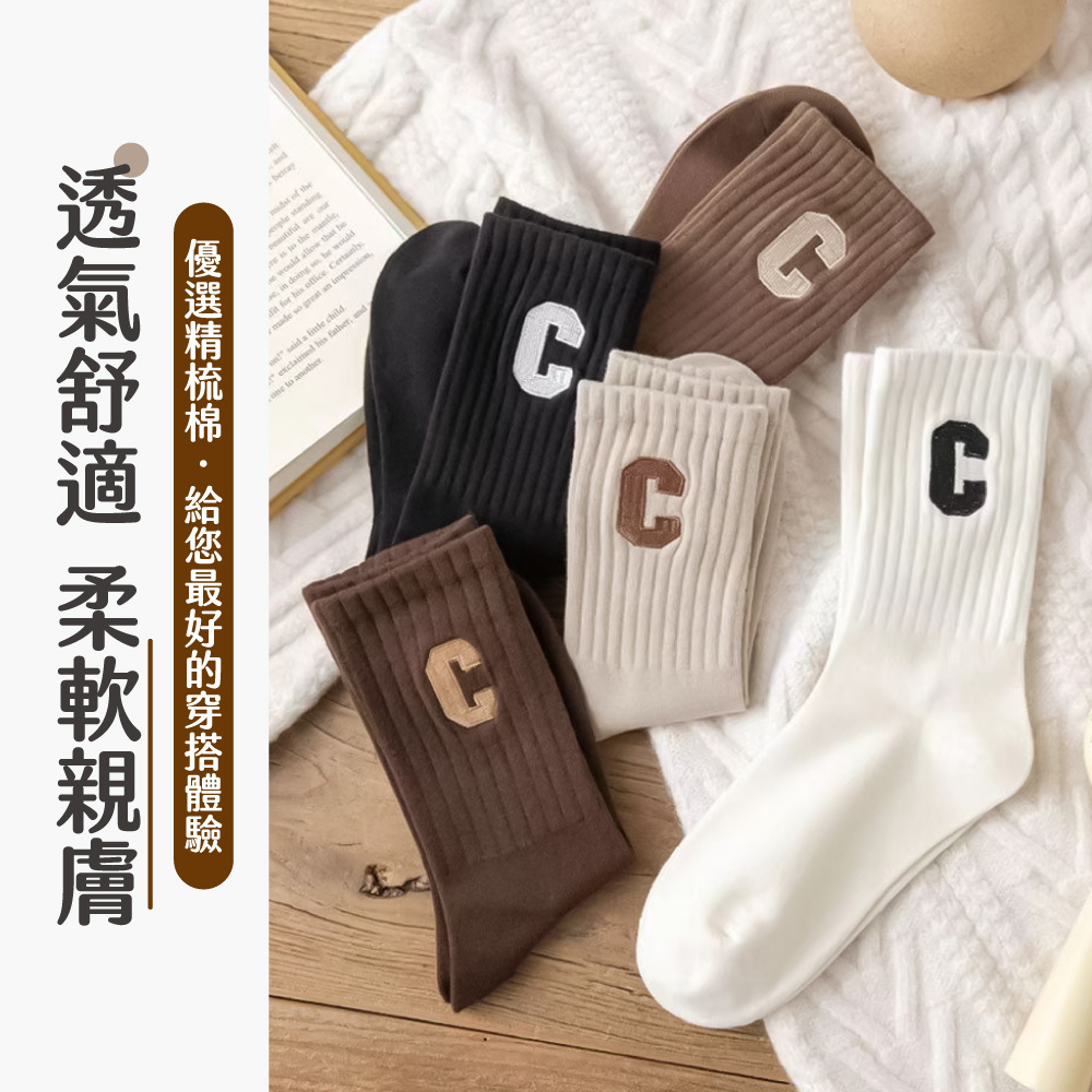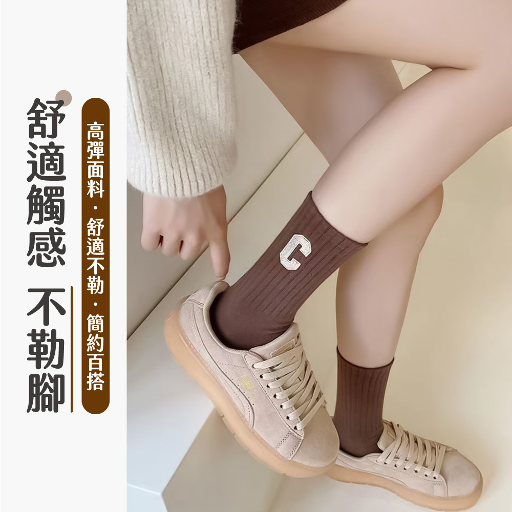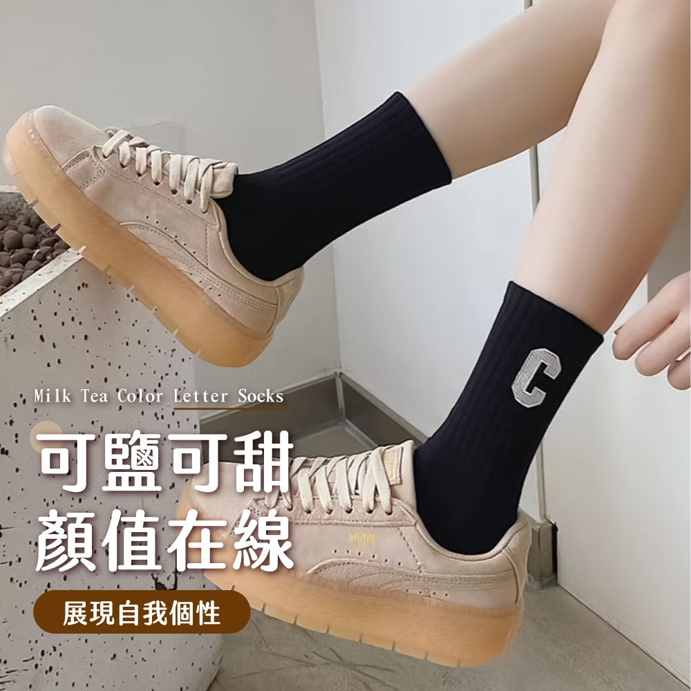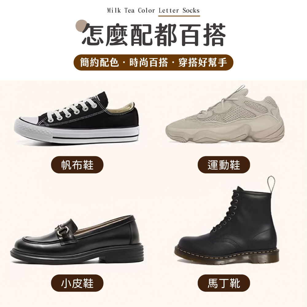 奶茶色字母中筒襪,
