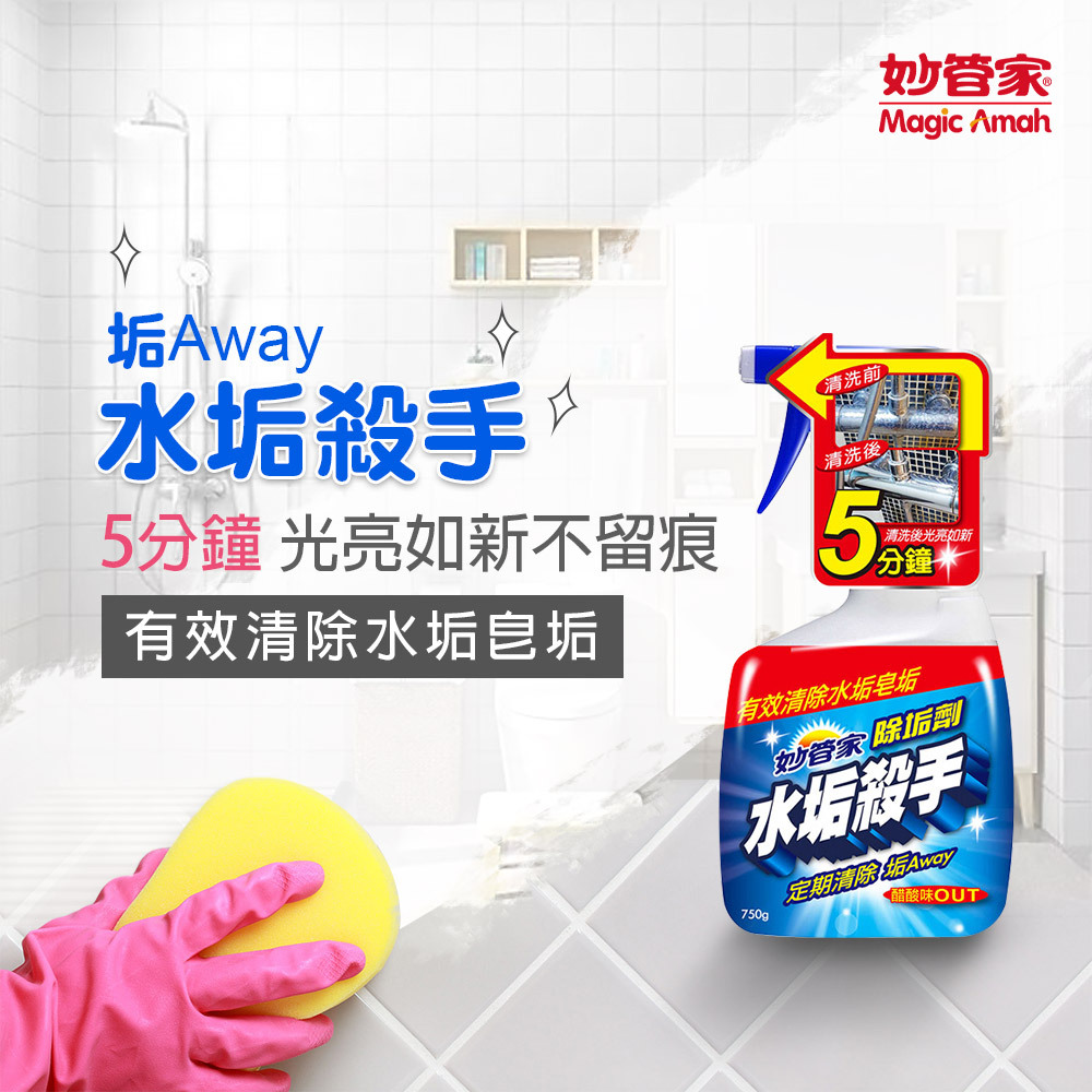 ▸妙管家水垢殺手: 針對水龍頭、鏡面、玻璃~快速除去水垢,不刮傷物體表面,輕鬆除水垢恢復透亮沒煩惱。