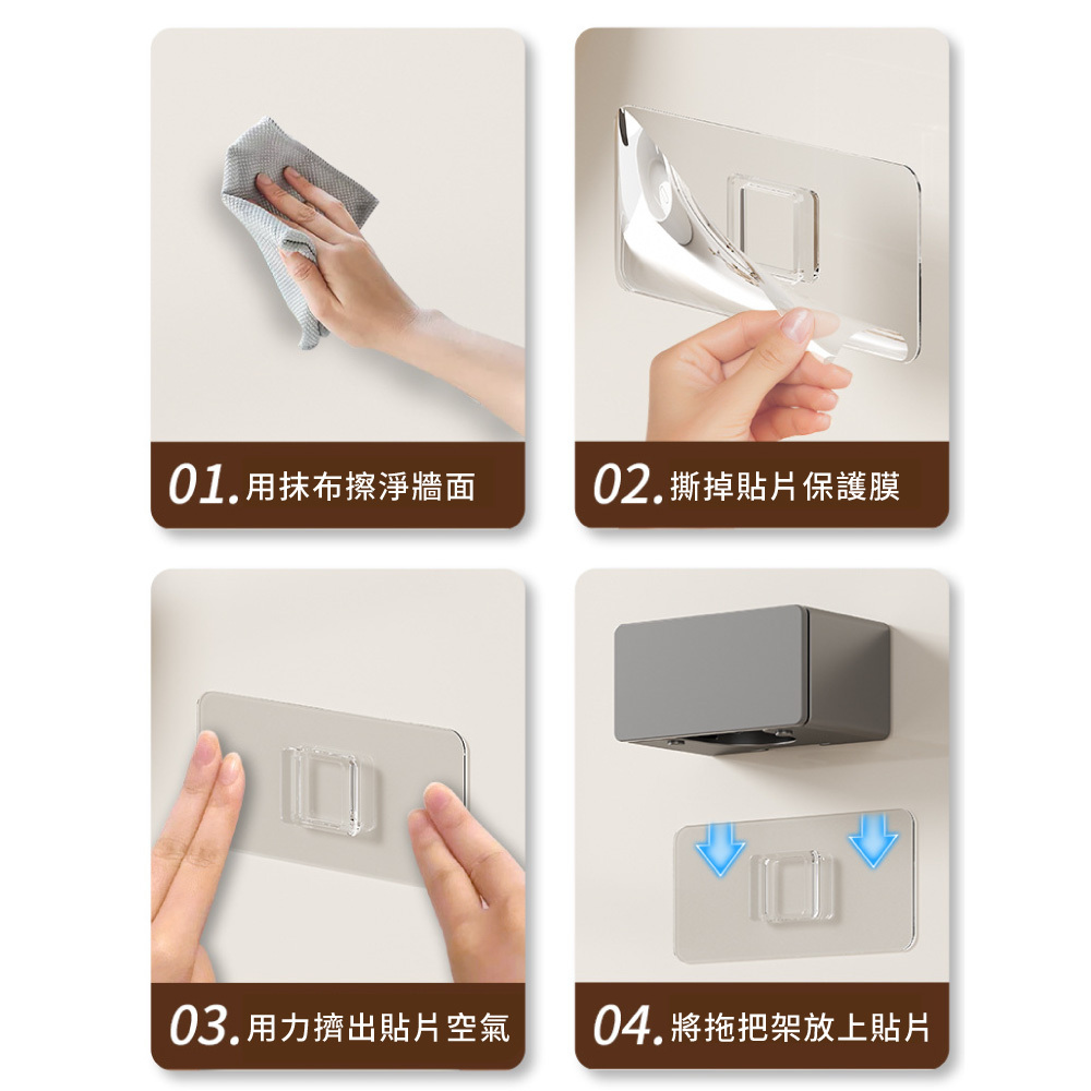 1.免釘免鑽:自帶強力背膠,撕貼即用。