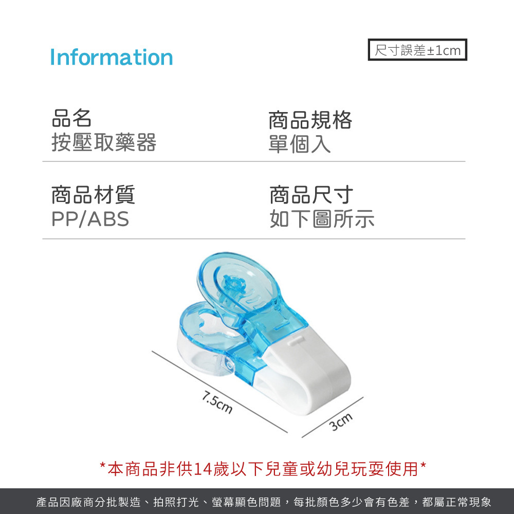 2.輕鬆取藥省時省力:適用2cm以內藥品,輕鬆取出不傷手