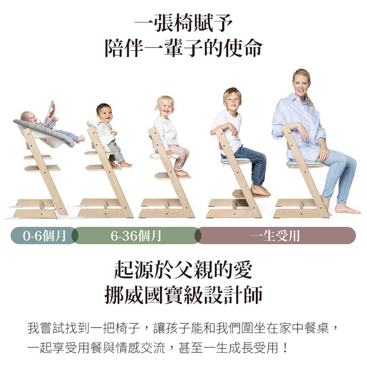 2.勿搭配非Stokke生產之配件使用於成長椅,以免不符影響穩定度