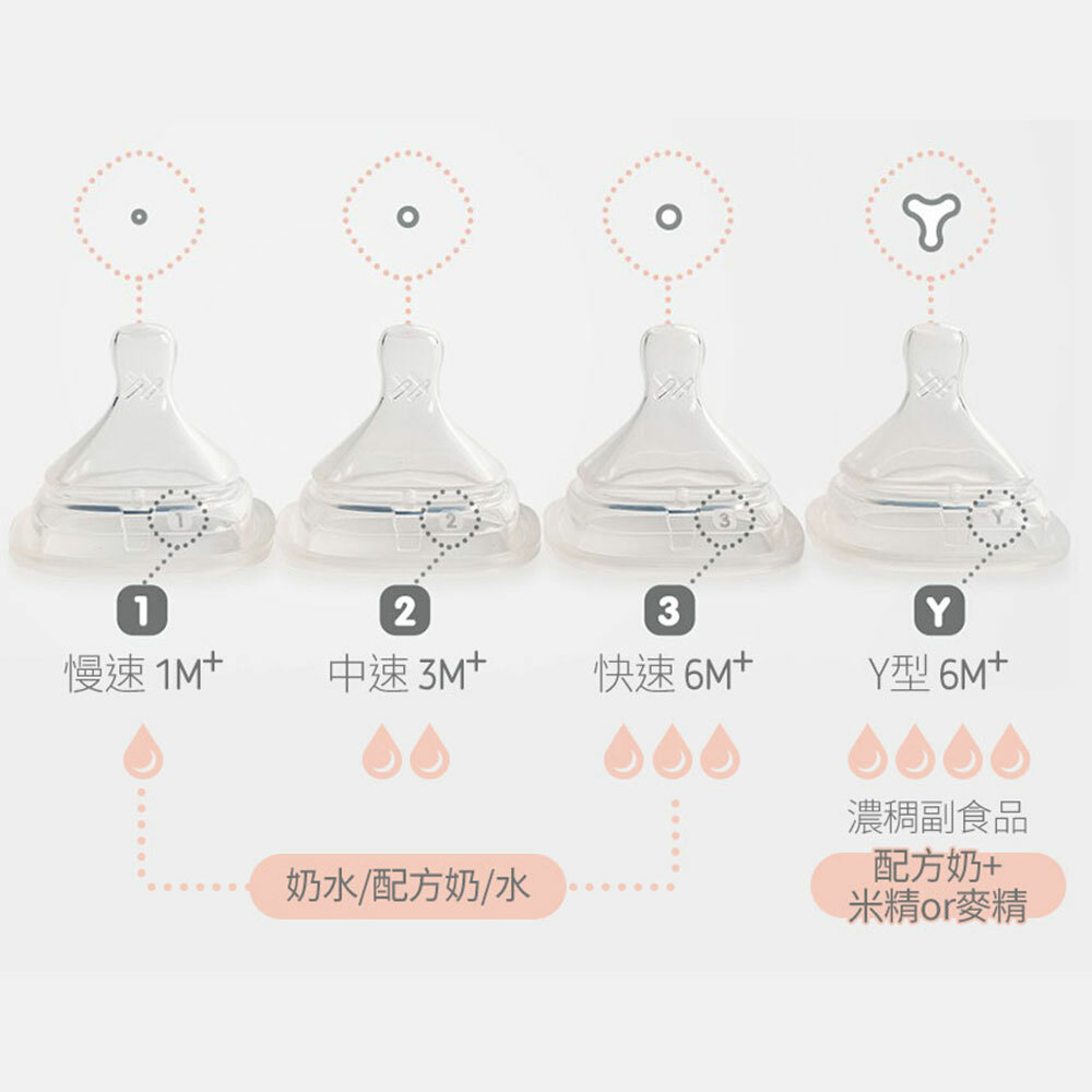 適用年齡:微慢速0M+ / 慢速0-3M / 中速 3-6M / 快速6M+ / Y型6M+