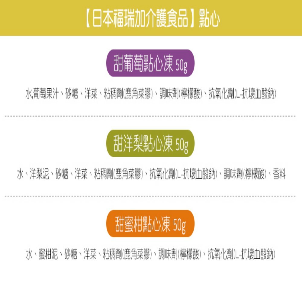 適用對象:有咀嚼、吞嚥或牙口狀況不佳者