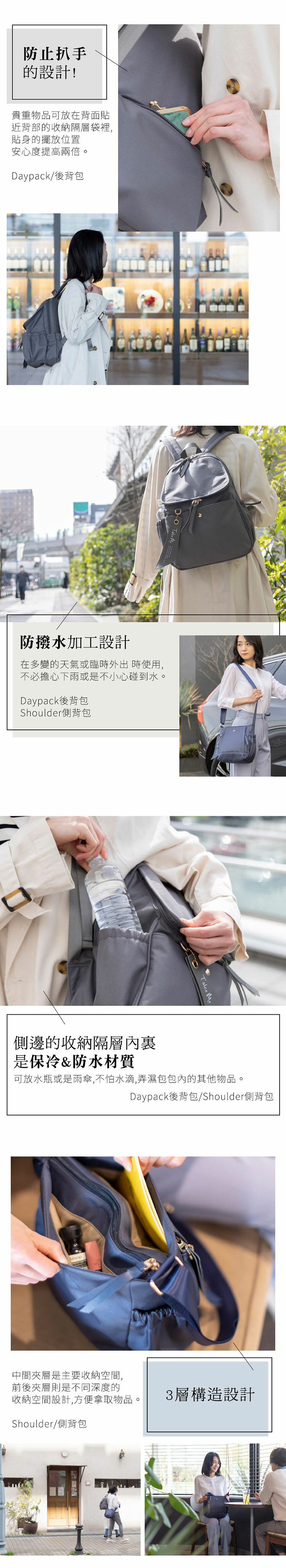 背面防扒手設計,貼身隔層,可放置重要物品