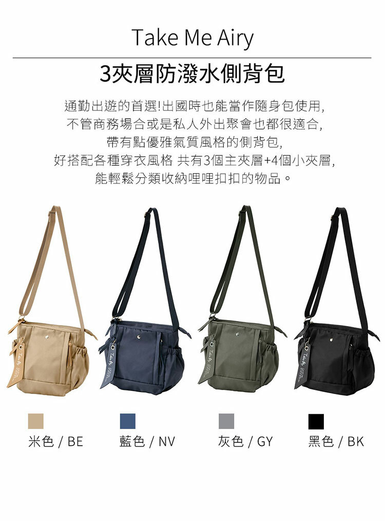 品名:日本Nicott TakeMe Airy系列-夾層防潑水側背包