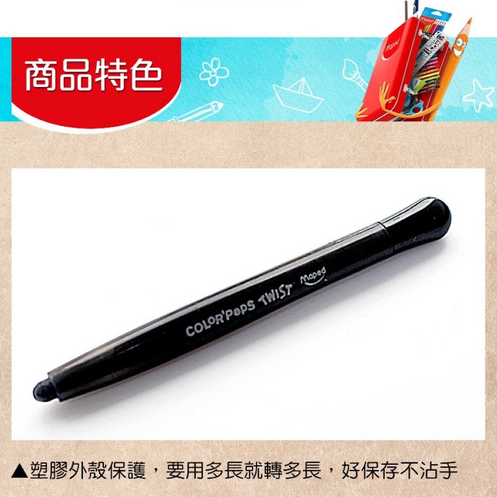 半透明塑膠筆桿,可保護蠟筆