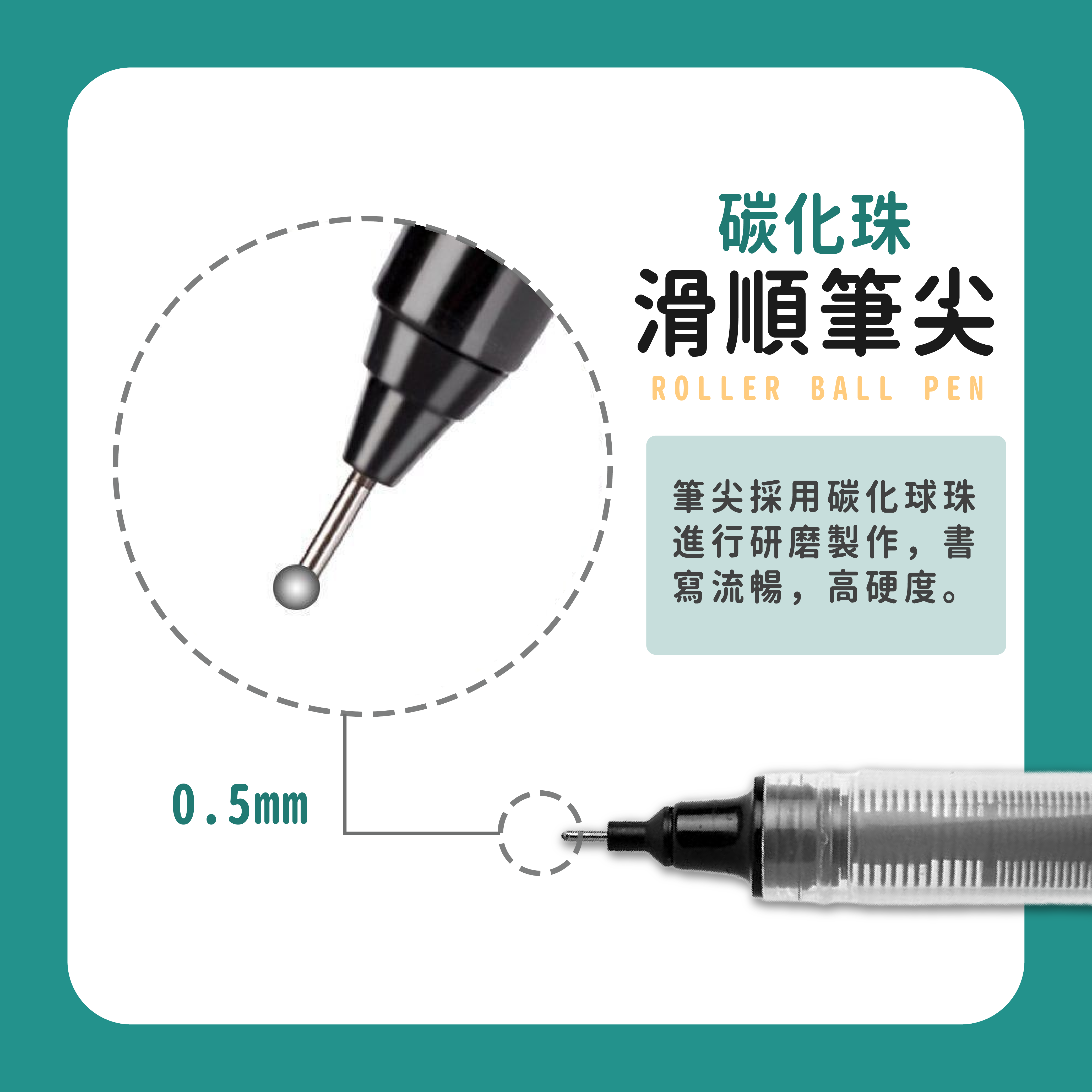 出墨穩定,不斷水透明筆桿,可隨時觀察墨量