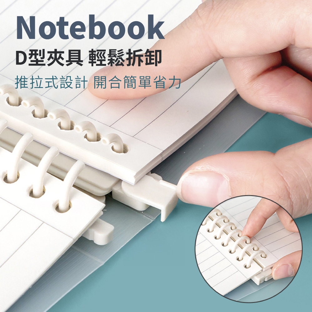 1.D型活頁夾設計,推拉即可拆卸內頁