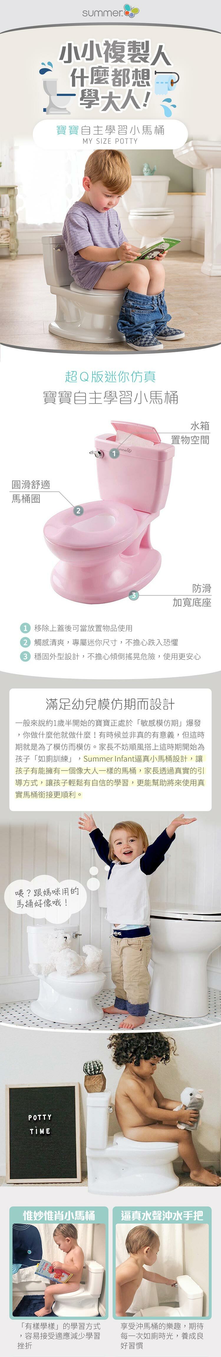 ✔仿照成人馬桶設計,有水箱和沖水器