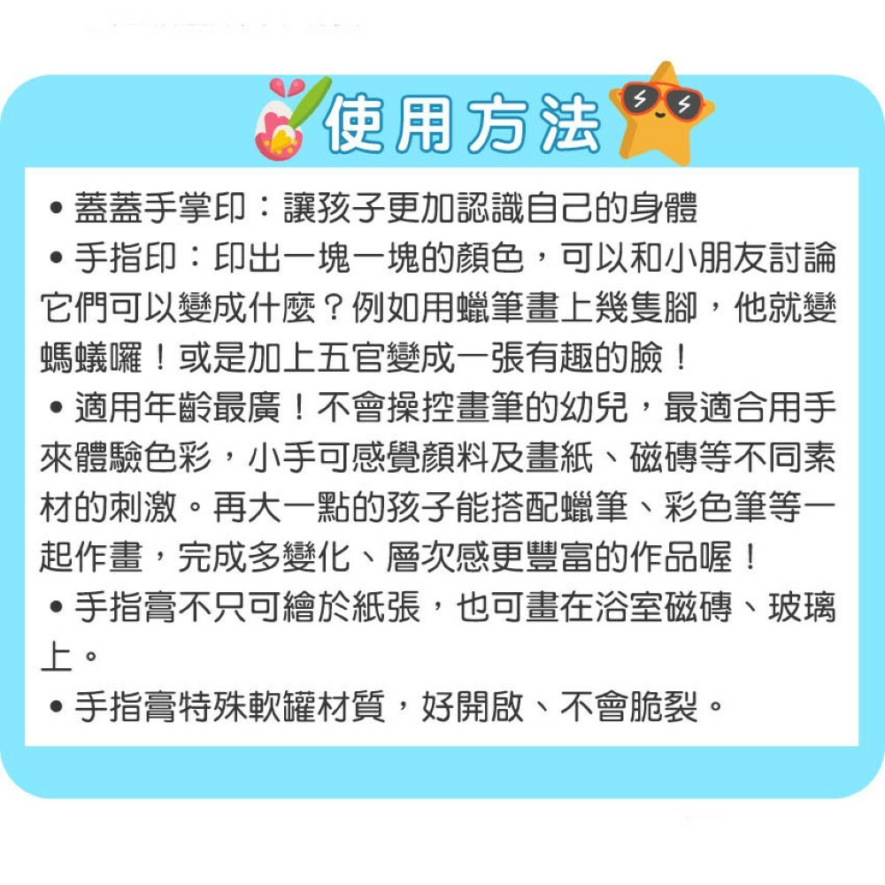 ✔內附四盒150ML手指膏,黃/綠/紅/藍共四色