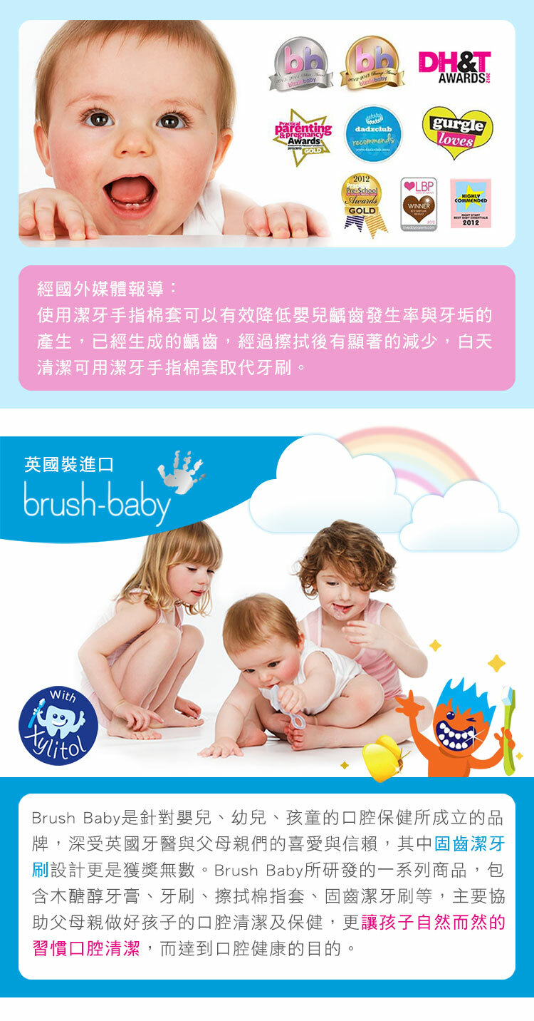 榮獲多項歐美獎項,經國外媒體報導,使用潔牙手指棉套可以有效降低嬰兒齲齒發生率與牙垢的產生,已經生成的齲齒,經過擦拭後有顯著的減少,白天清潔可用潔牙手指棉套取代牙刷。