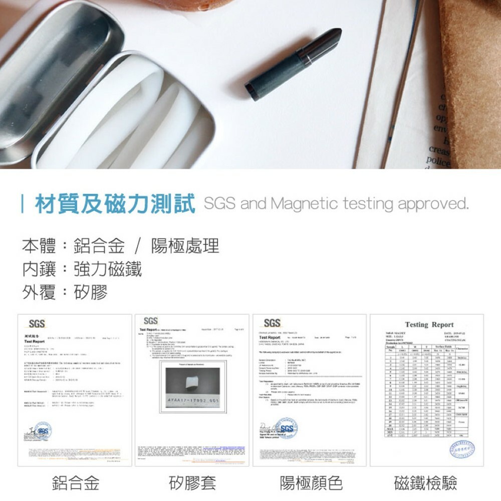 內嵌強力磁鐵,可吸附在隨行盒內