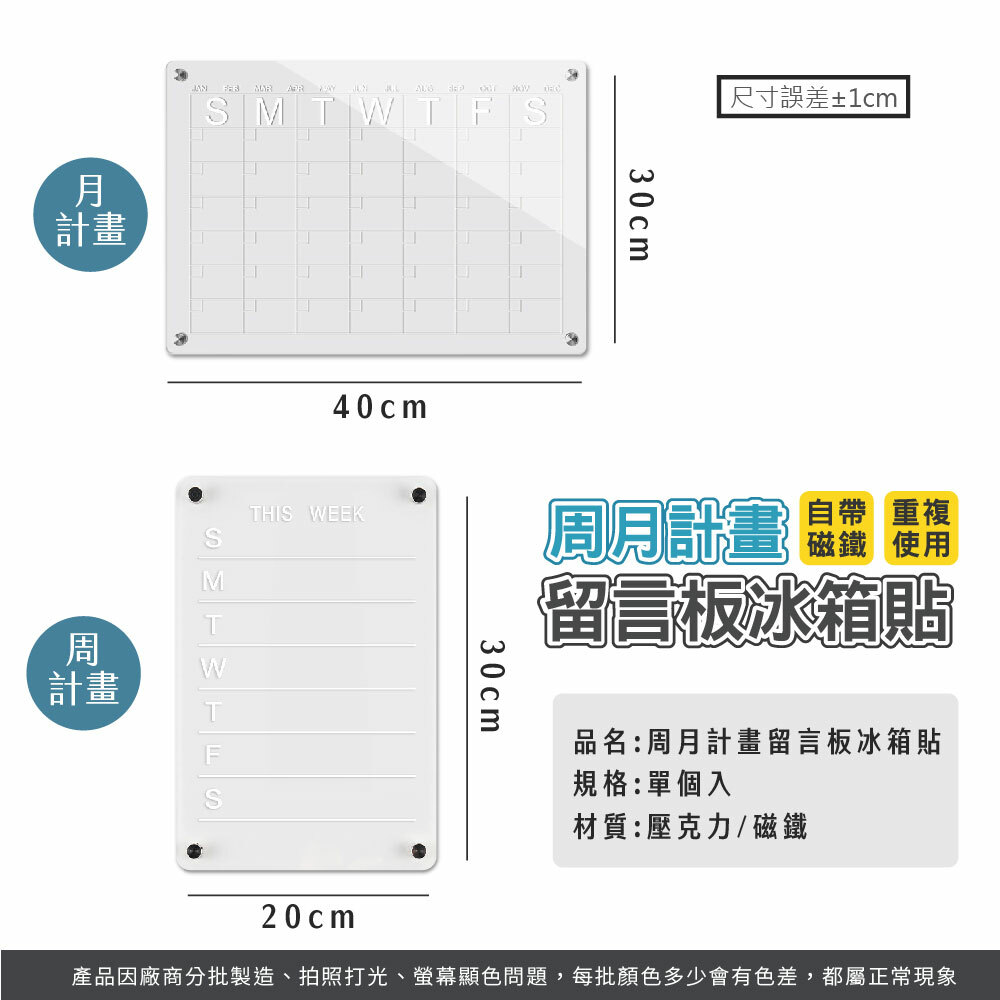 尺 寸:週計畫 20*30cm / 月計畫 30*40
