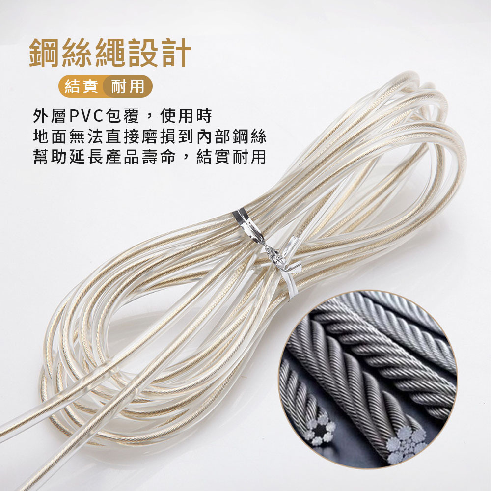 1. 鋼絲繩卡扣設計,自行裁剪長度,結實又耐用。