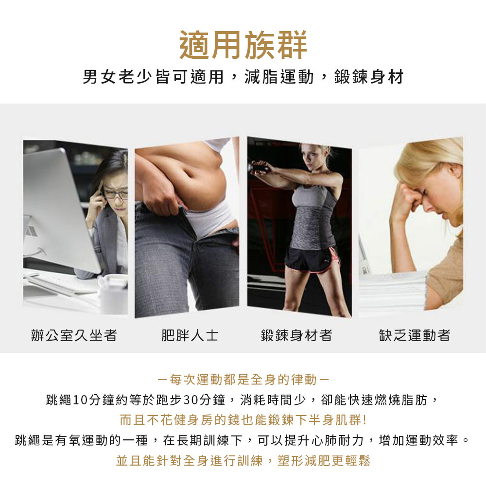 1. 跳繩前建議先做深蹲等下半身肌群的簡單伸展動作,避免運動傷害。