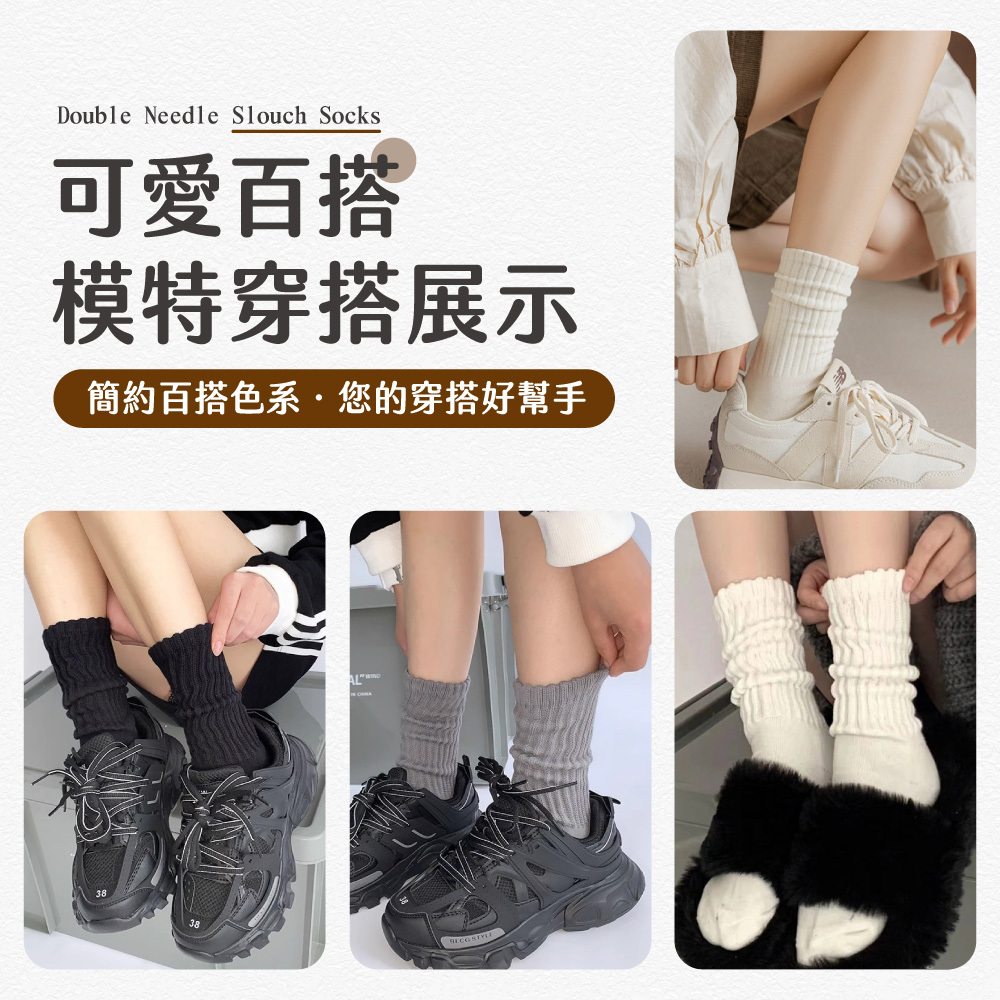 可愛百搭,雙針堆堆襪,