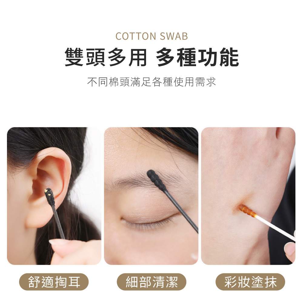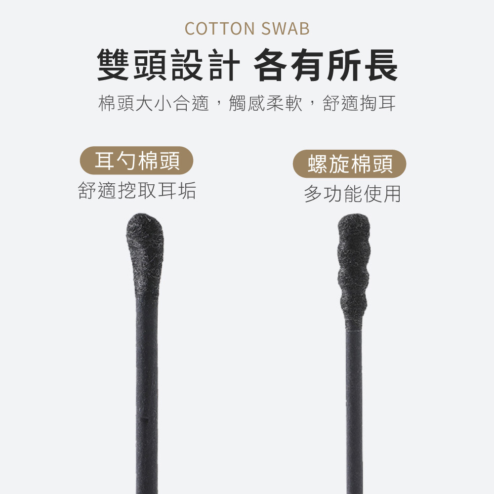 一端耳勺棉頭舒適掏耳,另一端螺旋棉頭多功能使用。