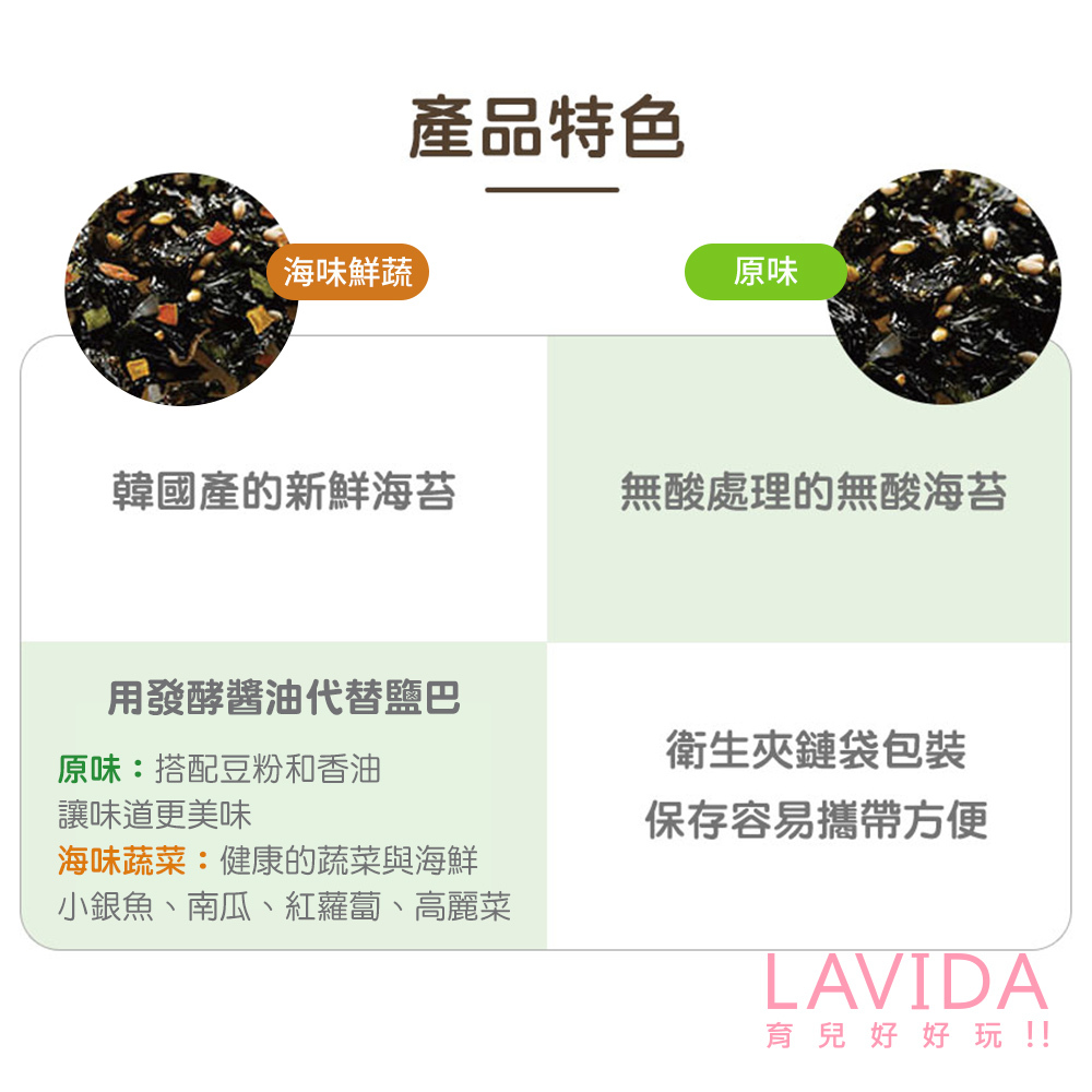 嚴選韓國產新鮮海苔、香油、豆粉口感更美味