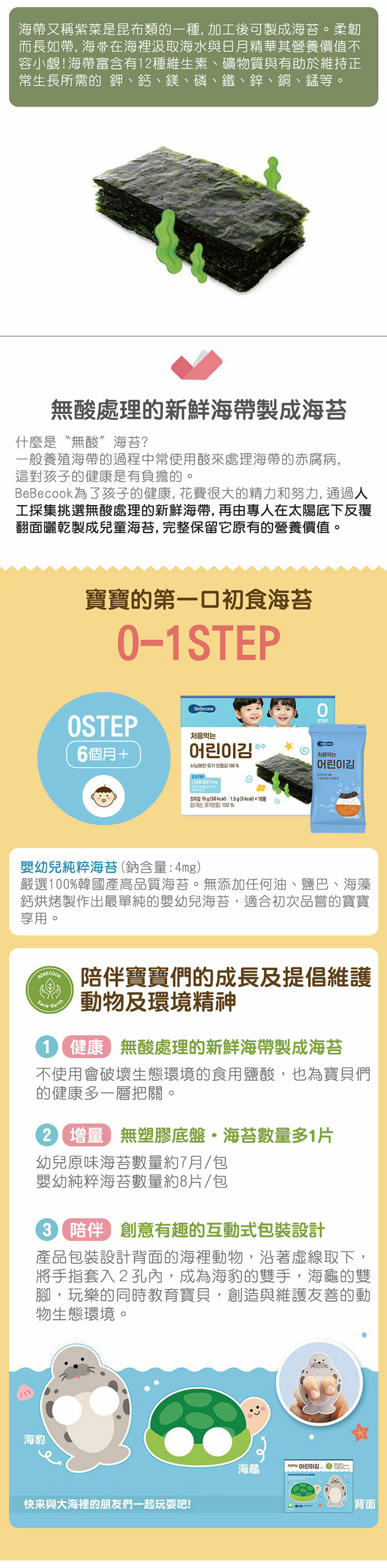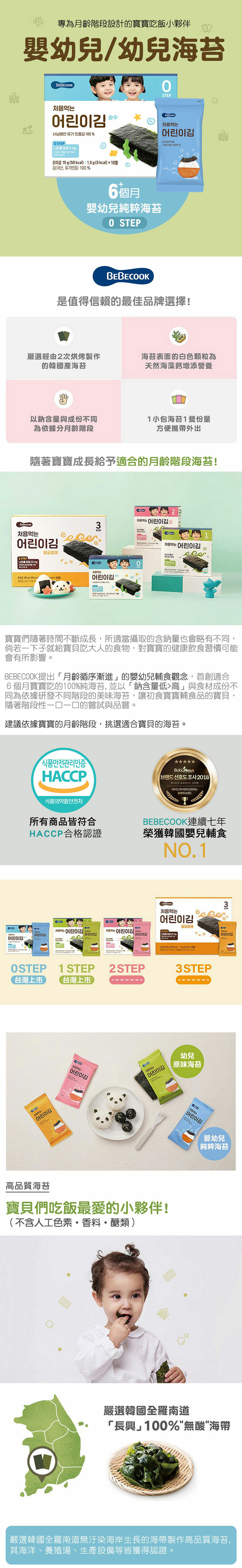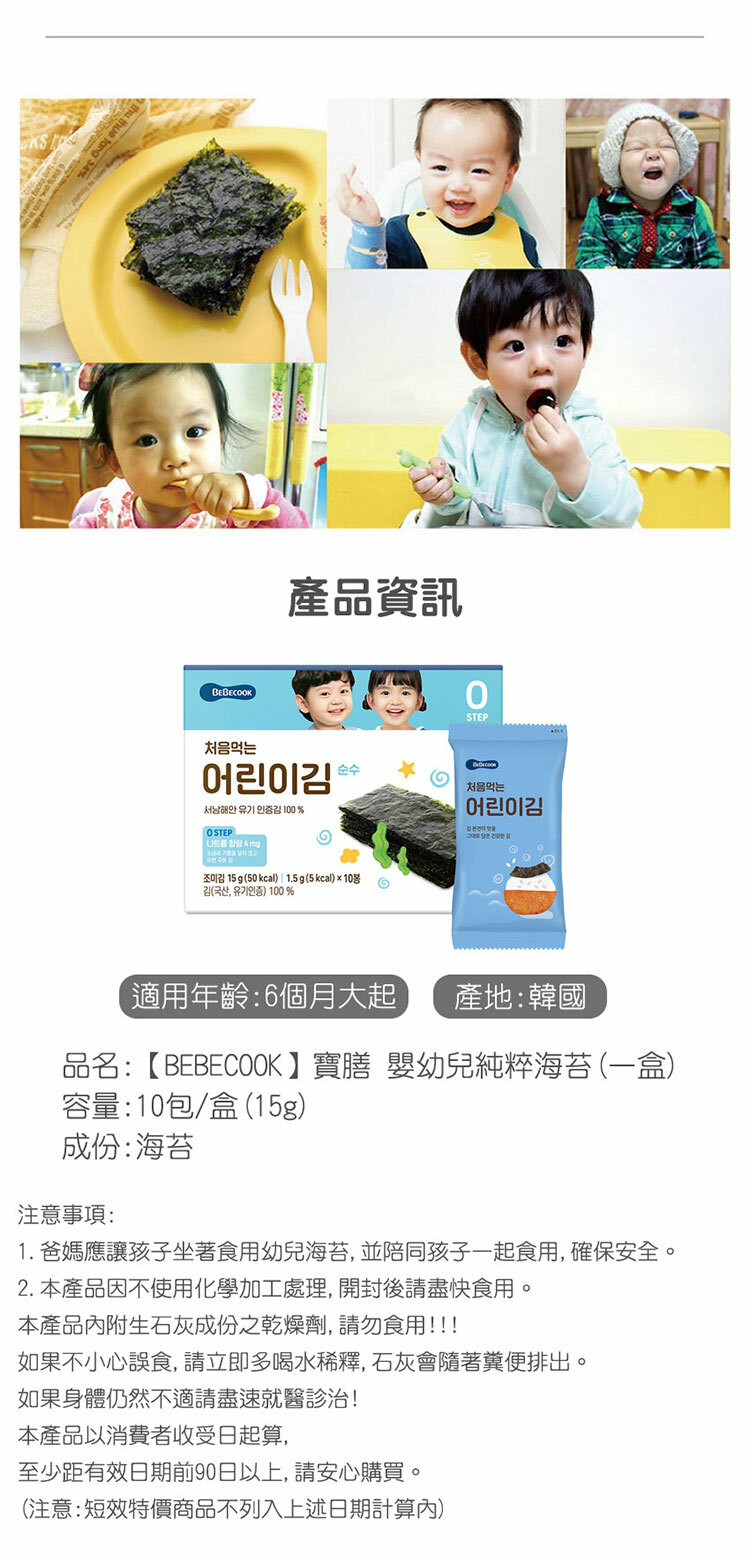 品 名:韓國Bebecook寶膳-嬰幼純粹海苔