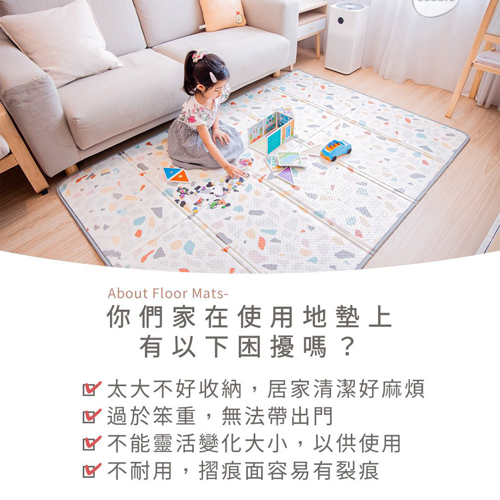 2.勿長時間放置重物於地墊上,避免留下凹痕