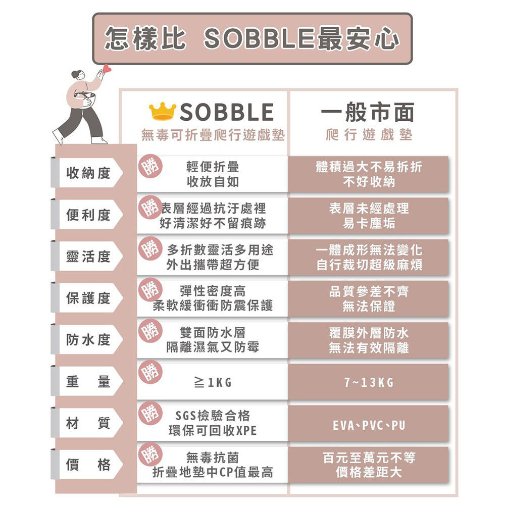 雙面防水環保PE材質,隔絕地面濕氣髒污