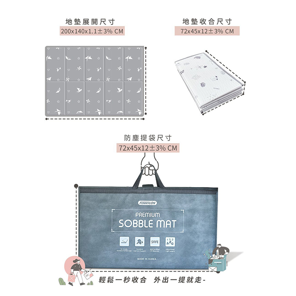 規格:展開尺寸140*200cm(厚度1.1cm),收合尺寸72*45*12cm