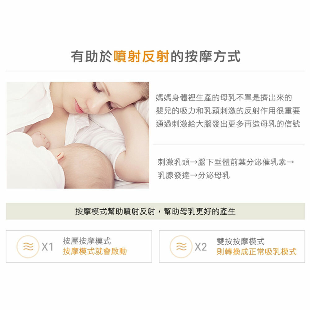 5段按摩+12段吸力調整,有助增加乳汁噴射反射